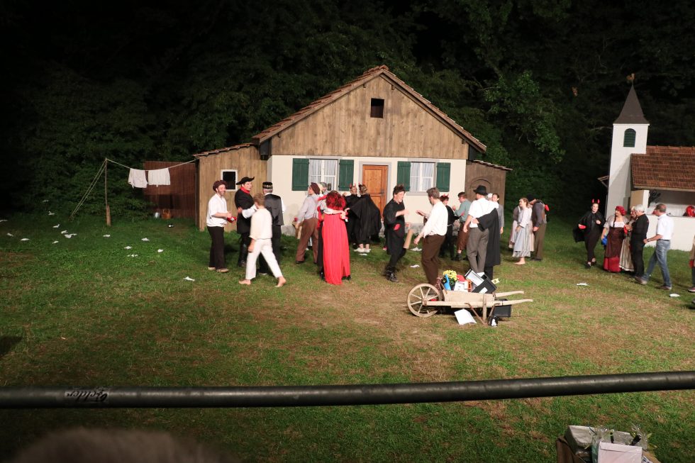 Ausgangspunkt für das Stück ist eine Geschichte, die sich in einer Dorfchronik findet. Diese Geschichte wird aus dem Blickwinkel des Unterteufels Urian erzählt. Er muss eine ungetaufte Seele der ewigen Verdammnis zuführen. Urian glaubt in einem Bauerndorf leichtes Spiel zu haben, Da die Männer zurzeit gegen die Katholiken in den Krieg gezogen sind, sollte Urian eigentlich leichtes Spiel haben. Als erste Versuche wegen dem feinen Schnaps jedoch auch wegen der feinfühligen Theodora kläglich scheitern, greift Oberteufelin Luzia Vera ein und gibt ihm die letzten Tipps. Er arrangiert das Zusammentreffen der Bauerntochter Regula mit einem Müllersknecht Hans, einem Katholiken aus dem Nachbardort. Bald darauf kündigt sich bei Regula Nachwuchs an: Eine Seele für den Teufel?